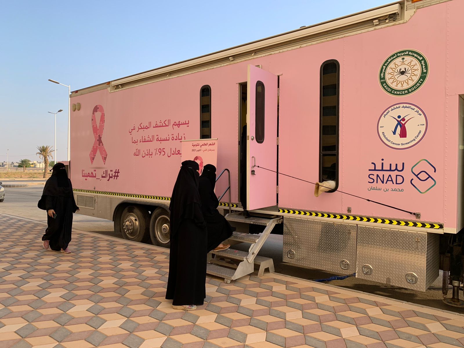 شهدت العيادة المتنقلة التابعة لمركز عبد اللطيف للكشف المبكر التابع للجمعية السعودية الخيرية لمكافحة السرطان، إقبال واسع من قبل السيدات خلال الأسبوع الأول من شهر أكتوبر للتوعية عن سرطان الثدي، إذ وصل عددهن إلى 1191 سيدة، استفدن من خدمات العيادة المتنقلة التي شملت فحص سريري للأعمار الأصغر من 40 سنة، وفحص الماموجرام للأعمار من 40 سنة فما فوق، إضافة إلى أركان للتوعية والتثقيف بأهمية الفحص المبكر لمساهمته بزيادة فرص الشفاء بنسبة 95% بإذن الله.