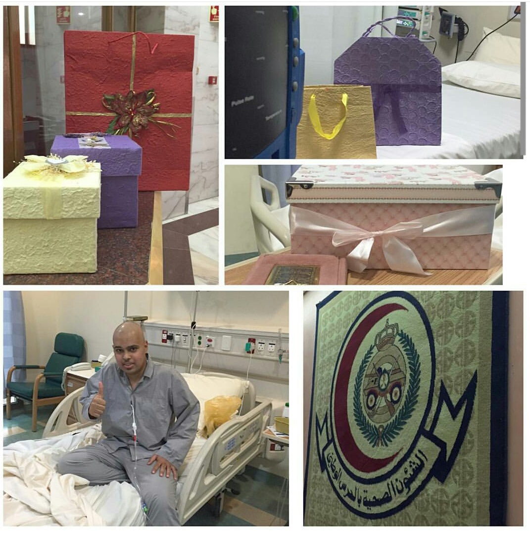 استكمالا لبرنامج ( #هدايا_العيد ) #فرحتكم_هي_العيد انطلقت بمستشفى قوى الأمن بمدينة الرياض بقية الزيارات المخصصة لمحاربي السرطان وذلك بحضور نجم مسلسل شباب البومب أ. فيصل العيسى حيث تمت تهنئة المرضى بقرب حلول عيد الفطر المبارك وتقديم الهدايا لهم سعيا لخلق جو من البهجة والسرور وحرصا منها على مواصلة برامجها للدعم النفسي للمرضى كما تم في نهاية الزيارة التقاط الصور التذكارية