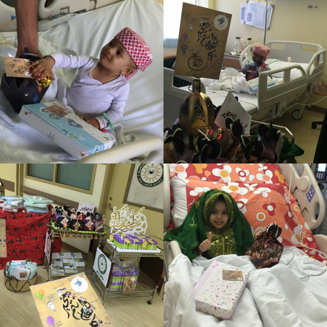 في أجواء شعبية تراثية احتفلت الجمعية السعودية الخيرية لمكافحة السرطان مع مجموعة شباب الخليج بالمرضى في مدينة الملك فهد الطبية وذلك ضمن برنامجها ( #هدايا_العيد ) #فرحتكم_هي_العيد