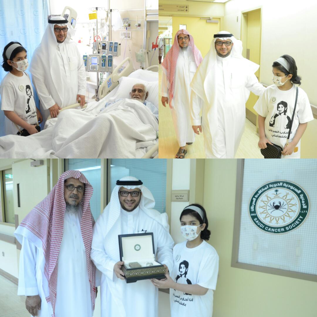 ضمن برنامج #هدايا_العيد #فرحتكم_هي_العيد استقبل مكتب الجمعية السعودية الخيرية لمكافحة السرطان بمدينة الملك فهد الطبية كل من أ. سعود بن هاجد رئيس مجلس إدارة شركة الهاجدية و سفيرة محاربي السرطان الطفلة / شريفة الحقباني . حيث تم زيارة المرضى بقسم الأورام وتوزيع هدايا العيد , كما شاركت الطفلة شريفة المرضى المنومين تجربتها مع المرض.